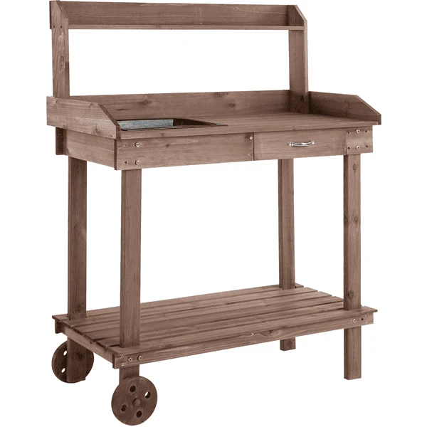 Outsunny Gärtnertisch mit Waschbecken und Rollen braun