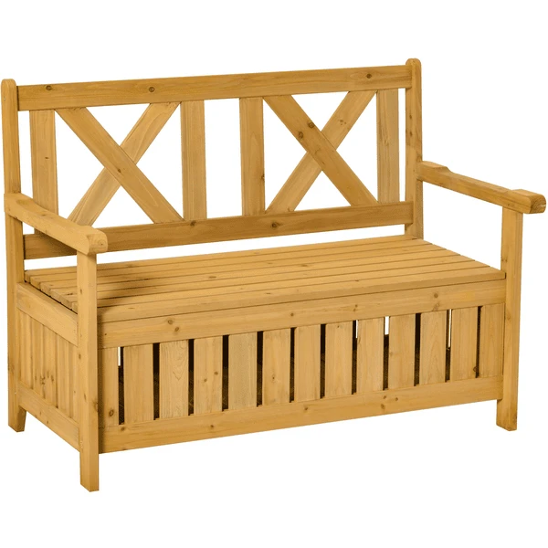 Lehnen Sie sich zurück und entspannen Sie sich auf Ihrer Terrasse oder Veranda mit dieser multifunktionalen Gartenbank! Diese Stauraum-Outdoor-Bank ist aus natürlichem Tannenholz gefertigt, das für den Allwettereinsatz konzipiert ist. Das geräumige Staufach unter der Ablagebank hat eine seitliche Jalousie, die sich perfekt für die Aufbewahrung von Kinderspielzeug und Werkzeugen eignet und für Ordnung sorgt.