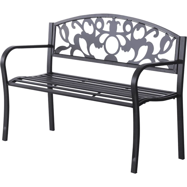 - Schönes Design: In mattem Schwarz gehalten verzaubert die Gartenbank durch die Kombination von elegantem Rückenmuster und klaren Linien.