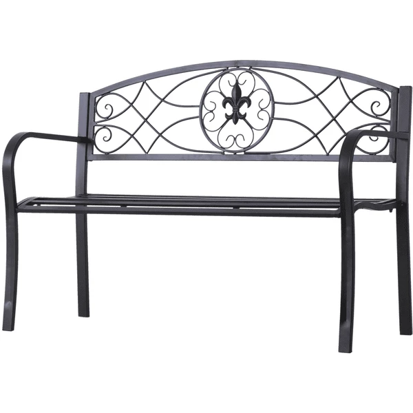 - Schönes Design: In mattem Schwarz gehalten verzaubert die Gartenbank durch die Kombination von elegantem Rückenmuster und klaren Linien.