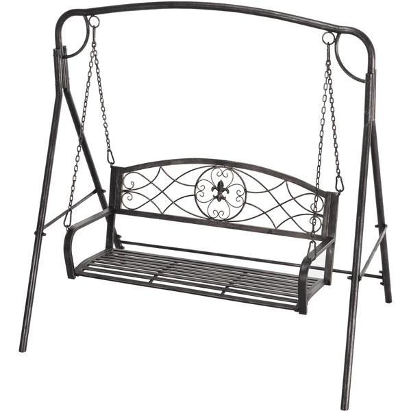 Suchen Sie nicht weiter nach einer dekorativen Schaukel, um Ihren Garten zu verschönern. Sie haben Sie gefunden! Unsere Schaukel mit Bronzefarbe ist ein echter Hingucker für Sie und Ihre Gäste. Die robuste Metallkonstruktion kann bis zu 220 kg tragen und der rostresistente Metallrahmen macht sie ideal für Außenbereiche. Nehmen Sie einfach Platz und entspannen Sie mit einem guten Buch, zum Picknick oder einfach um die Wärme zu genießen.