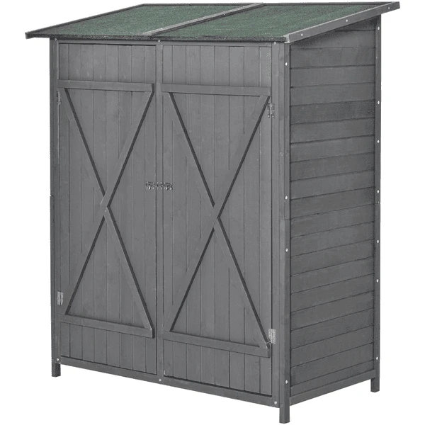 Dieser Geräteschuppen ist ein sicherer und praktischer Aufbewahrungsort für ihr Gartenzubehör und ihr Werkzeug. Das rustikale Design passt gut in jeden Garten. Die stabile Konstruktion aus lackiertem Tannenholz ist wasserabweisend und wetterbeständig. Im Lieferumfang enthalten ist ein separater Tisch für Gartenarbeiten, der auch als Hocker verwendet werden kann. Dieser Geräteschuppen schütz ihr Gartenzubehör vor Wind und Wetter.