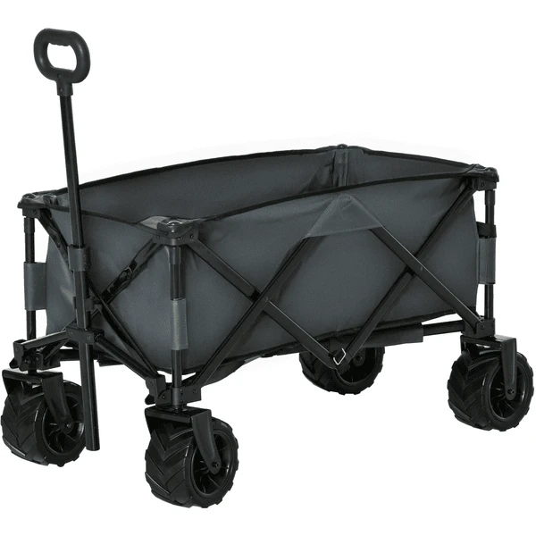 Der Bollerwagen von Outsunny kann Gewichte bis zu 70 kg transportieren und ist perfekt geeignet, um alles, was Sie brauchen, auf einmal zu bewegen. Ein Metallrahmen bildet den robusten und widerstandsfähigen Kern, und vier Räder – von denen zwei um 360 Grad drehbar sind, um sich besser bewegen zu können – sorgen für ein leichtes Vorankommen im Sand. Er ist zusammenfaltbar, sodass er platzsparend im Auto oder zu Hause verstaut werden kann.