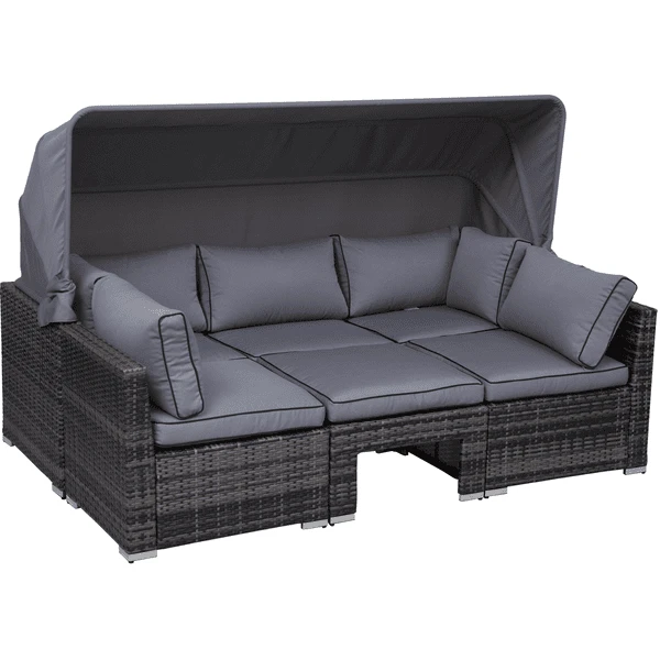 Outsunny Polyrattan Lounge-Set mit Sonnendach, Kissen und Beistelltisch grau